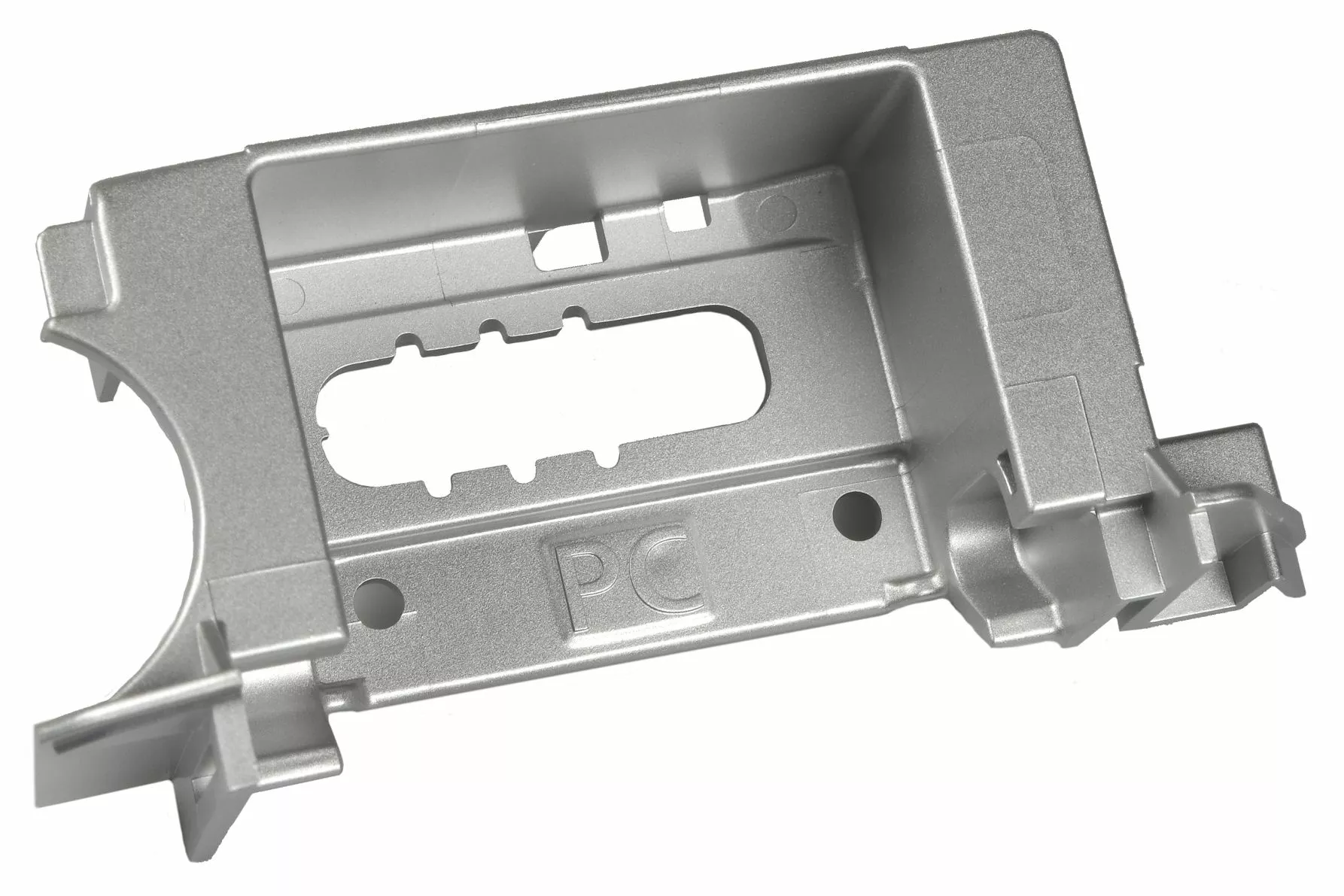 Diese Verkleidung trĂ€gt das Gewicht des Akkus und verfĂŒgt ĂŒber ausgearbeitete Nuten, die das Einsetzen und Entnehmen des Akkus erleichtern.
