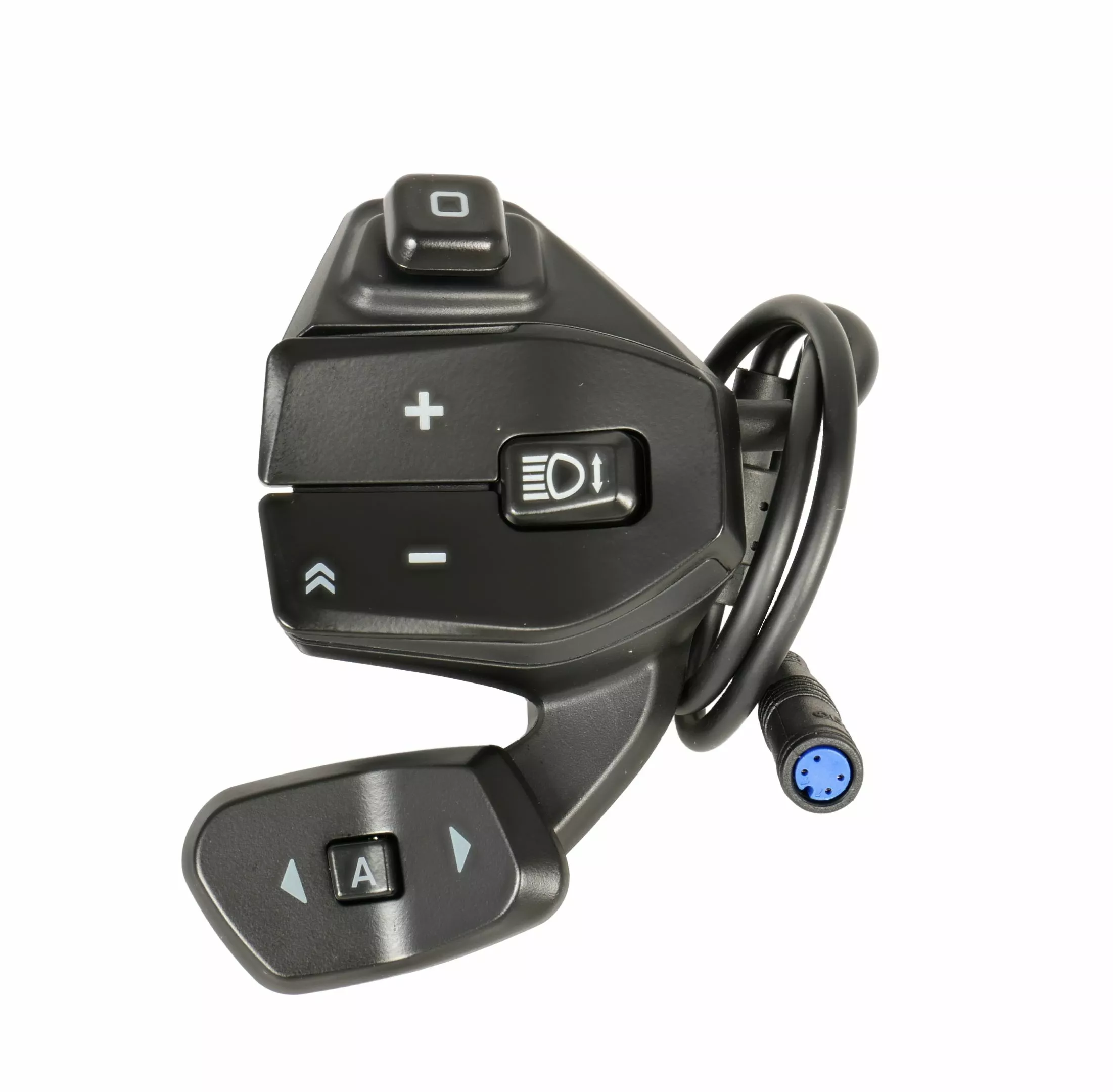 Das Besondere an der Fernbedienung ist die zusätzliche Schaltwippe, mit der am Panasonic 2-Gangmotor die Gänge manuell gewechselt werden können – ein Automatik Modus kann ebenfalls ausgewählt werden. Die Tasten mit Vibrationsfeedback sorgen für eine leichte Bedienbarkeit, auch mit Handschuhen oder in der Dunkelheit. Zusätzlich kann mit der Fernbedienung die Unterstützungsstufe geändert sowie das Licht an- und ausgeschaltet werden. Der Cursor ermöglicht ein kinderleichtes Wechseln zwischen den Menüs.