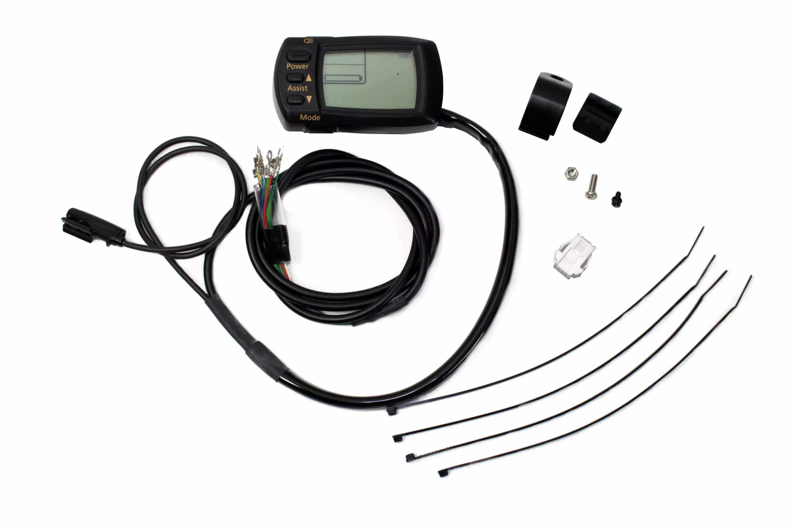 | Lieferumfang: | Panasonic Premium 26-Volt Display mit Lenkerschelle, VR Geschwindigkeits-Sensor mit Speichen-Magnet, frei belegbarer Anschluss-Stecker |
