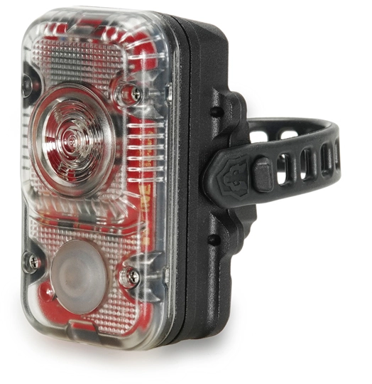 Das Sensorgesteuerte Licht überzeugt nicht nur mit seiner enormen Leuchtkraft von 40 Lumen sondern besitzt auch noch einen Bremssensor. Bei einem Bremsvorgang reagiert das Rotlicht Max sofort und die Helligkeit des Rücklichts wird erhöht, so wird dem Hintermann signalisiert das Sie langsamer werden. Das Gehäuse ist aus einem CNC gefrästen eloxiertem Aluminium, wobei der Frontdeckel aus Polycarbonat (PC) ist. Dank dieser Kombination ist dieses Rücklicht wasserdicht und stoßfest.