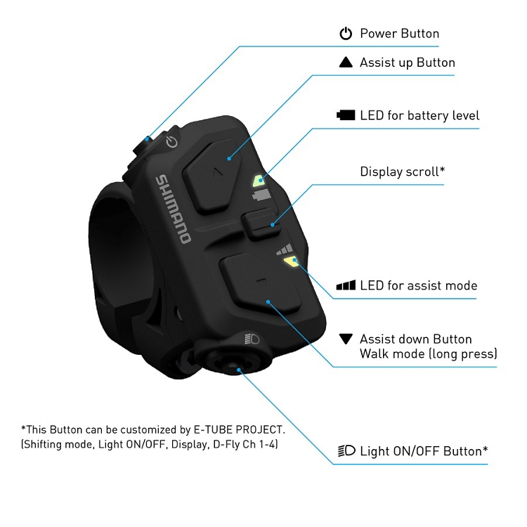 Dieser intuitive UnterstĂŒtzungsschalter mit integrierter Einschalttaste ist fĂŒr alle E-Bike-Typen mit Shimano System (EP801/EP600) geeignet und sorgt mit seinem kompakten Design fĂŒr eine aufgerĂ€umte Optik im Cockpit-Bereich.