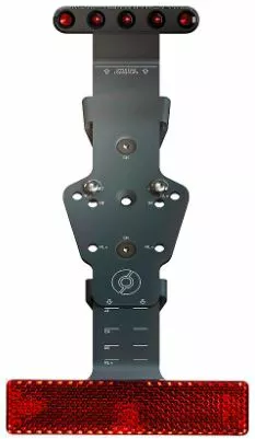 Das SUPERNOVA L1e Legal Kit ist eine Kennzeichenhalterung inklusive des Rückstrahlers mit E-Nummer für S-Pedelecs bis 45km/h. Als erste Universallösung ist der zweiteilige, höhenverstellbare Kennzeichenhalter kompatibel zu allen europäischen Kennzeichengrößen. Dank Lasermarkierungen lassen sich die unterschiedlich großen Kennzeichen stets korrekt positionieren, sodass diese im Sinne der StVZO immer korrekt beleuchtet werden. Das ECE konforme Rücklicht mit integriertem Bremslicht und Nummernschildbeleuchtung sind immer optimal positioniert. Der Halter ist kompatibel zu allen gängigen Schutzblechradien.