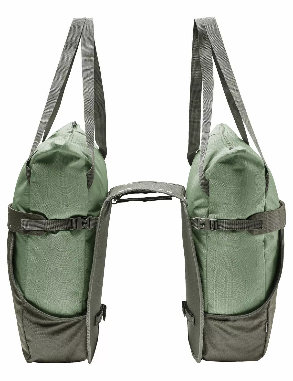 Dank Holster-System können Sie die TwinShopper entweder ĂŒber Ihren GepĂ€cktrĂ€ger legen oder entnehmen und als Einkaufstasche verwenden.